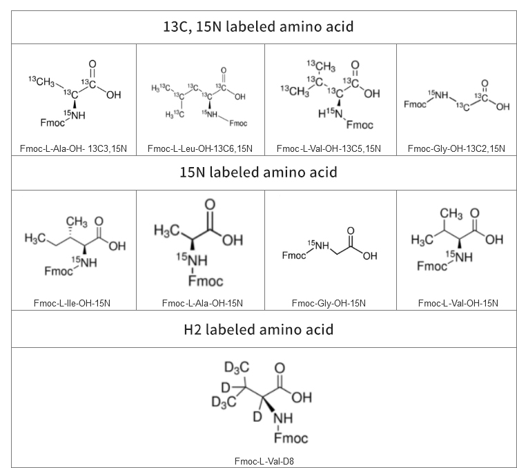 At present, C13, 15N and H2 are still widely used in non-radionuclide labeling of polypeptides, because they are safe to use and have little radioactivity. There are now relatively complete non-radiolabeled amino acids, which can be directly linked to peptides by normal peptide synthesis methods.