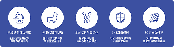 强耀生物高通量全自动筛选平台、标准化羊驼繁育基地,提供全面的抗体定制改造服务,通过记忆B细胞与浆细胞双筛选的双重保障,实现90天高交付率,为您提供涵盖抗体筛选、定制到交付的全流程优质解决方案。