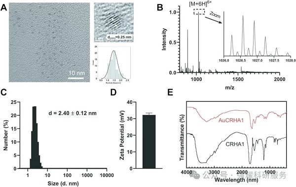 (1)合成一种与肽CRHRHKLVFF功能化的新型金纳米簇(AuCRHA1);