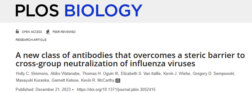 基于此,美国匹兹堡大学医学院科学家开发能同时抵御多种毒株的流感疫苗,重点关注H1和H3流感亚型。相关研究于12月21日发表在期刊《PLOS Biology》上,题目为:A new class of antibodies that overcomes a steric barrier to cross-group neutralization of influenza viruses。研究团队在人类血液中发现了一类以前未被识别的抗体,这种免疫系统蛋白可以预防疾病,似乎能够中和多种形式的流感病毒。