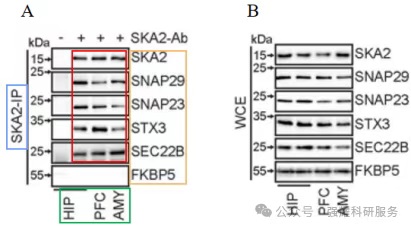 图6.验证SKA2与其他蛋白在不同脑区相互作用强度