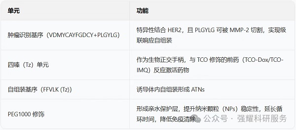 TMP(四嗪修饰肽)含 4 个核心单元,其结构与功能如下: