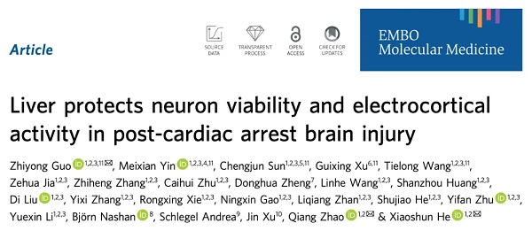 近日,中山大学附属第一医院何晓顺、赵强和郭志勇等在 EMBO Molecular Medicine 期刊发表了题为:Liver protects neuron viability and electrocortical activity in post-cardiac arrest brain injury 的研究论文。