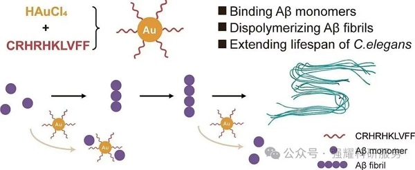 2025年,福建闽江大学的研究团队在Materials & Design发表题为“Aβ aggregation inhibition via peptide-conjugated gold nanoclusters”的研究论文,该项工作中设计了一种新型肽修饰的金纳米簇AuCRHA1,实现了Aβ聚集的高效抑制与毒性逆转,为阿尔茨海默病(AD)治疗提供了新策略。