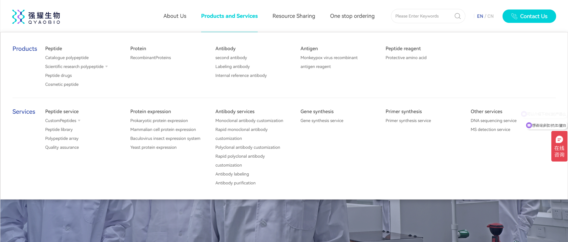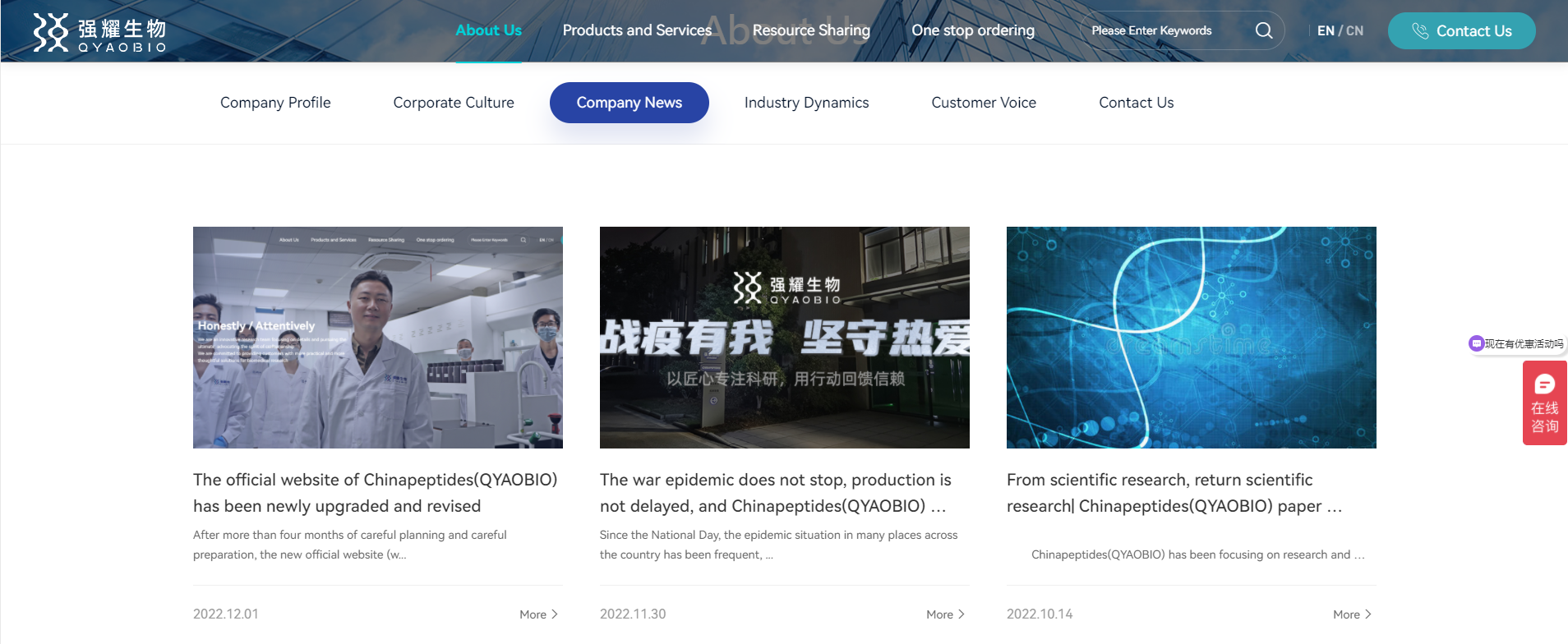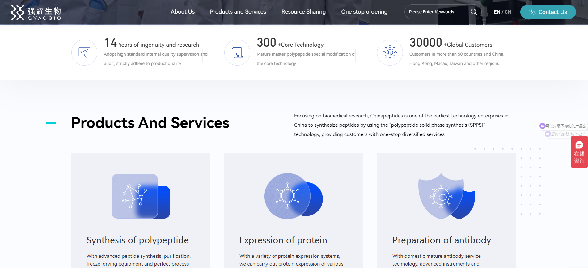 QYAOBIO(ChinaPeptides) has been focusing on peptide synthesis, protein expression and antibody preparation for many years, adhering to the route of scientific research craftsmen, and is committed to providing customers with real scientific research service solutions with high-quality products, professional technology and intimate services to help biomedical scientific research. Now, the new official website of QYAOBIO(ChinaPeptides) has been revised, which will bring customers a better and better service experience while ensuring product quality as always.