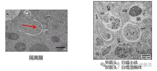 ▫️自噬体作为亚细胞结构,无法通过普通光学显微镜观察。利用透射电子显微镜直接观察自噬过程中各阶段的形态学变化,是目前最为直观的研究方法之一。