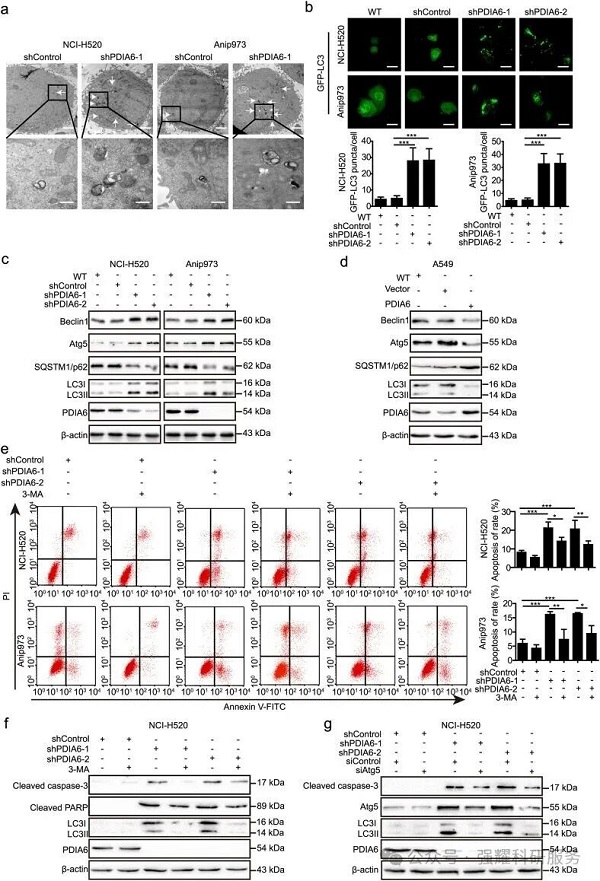 (2)干扰PDIA6能够增加细胞的自噬水平,同时细胞凋亡水平也升高,但是这种现象被3-MA(自噬抑制剂)所抑制。