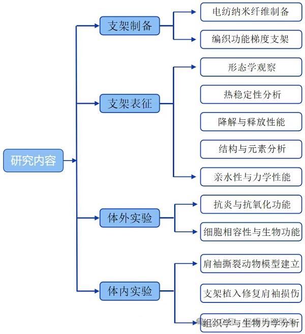 建立新西兰兔全层肩袖撕裂模型,分为对照组(单纯缝合)、PS支架组、MDP1&HA支架组,术后2/4个月进行组织学(H&E、Masson染色)与生物力学分析。
