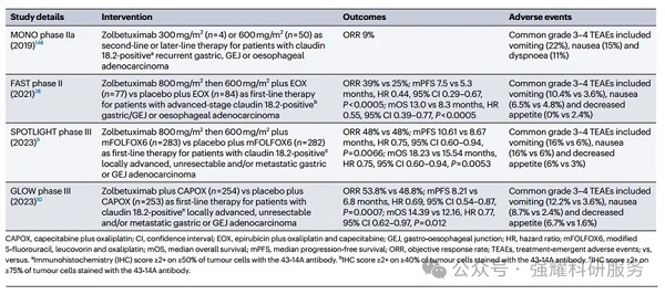 zolbetuximab的II期和III期临床试验,doi: 10.1038/s41571-024-00874-2